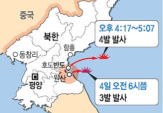 북한이 단거리 미사일에 이어 4일에도 방사포를 동해로 발사했다. 지난 3일 발사한 스커드 미사일보다 비행 거리가 짧지만 한·미 연합 ‘키리졸브’ 연습에 대응하고 수도권에 직접적 위협을 과시하려는 목적으로 추정된다.