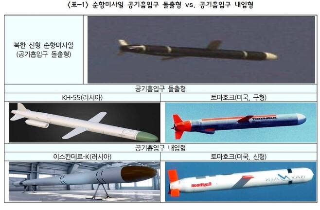 북한이 이번에 발사한 순항미사일은 개발 중인 ‘신형’인 것으로 알려졌다. 지난해 10월 국방전람회 때 두 종류의 신형 순항미사일을 공개한 바 있다. 신종우 한국국방안보포럼(KODEF) 전문연구위원은 “북한이 현재 개발하고 있는 순항 미사일이 두 가지”라며 “종류별로나 동일한 것을 조건을 달리해 각각 쐈을 수도 있다”고 예상했다.