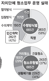 특혜 시비가 끊이지 않던 지방자치단체 청소 대행사업의 실태가 적나라하게 드러났다. 20년 동안 원가 계산 없이 특정업체와 계약하거나, 계약 절차조차 없이 내부 결재만으로 위탁업체를 선정한 지역도 있었다.