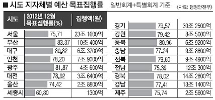 정부가 경제 활성화를 위해 지자체 예산집행률을 높이기로 했다.행정안전부는 지난해 76.1%였던 지자체 예산집행률을 1.6% 포인트 높이기로 했다고 10일 밝혔다. 이에 따라 전체 지자체의 예산집행률 목표는 77.7%로 상향된다. 정부가 지자체에 예산 조기집행이 아니라, 예산집행률을 높이라고 당부한 것은 처음이다. 행안부는 이날 기획재정부 장관 주재로 열린 제5차 경제활력 대책회의에서 이 같은 계획을 밝히고 대내외 경제 악화 가능성에 대비하기로 했다.