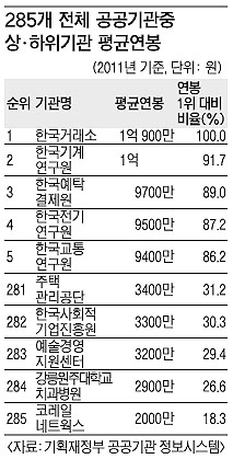 285개 공공기관 임금 분석