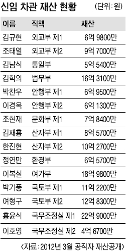 새 정부 차관 평균재산 10억원대