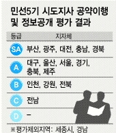 한편 이번 평가에서 5단계 평가등급 중 최고등급(SA등급)을 받은 광역 지자체는 부산·광주·대전광역시, 충청남도, 경상북도 등 5곳이다.