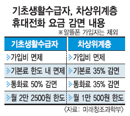 통신료 감면은 통신 소외층을 줄이기 위해 기초생활수급자와 차상위계층 일부 등에 이동통신 가입비, 기본료 및 통화료를 면제·할인해 주는 정책이다. 특히 차상위계층은 계층 전원이 아니라 장애인, 한부모 가정 등 법으로 정한 경우만 감면 혜택을 받을 수 있다. 영유아보육법, 유아교육법에 따라 보육료 등을 지원받는 차상위계층도 혜택 대상자였으나 이번에 제외된 것이다.