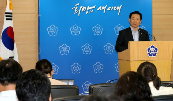 연합뉴스" title="박찬우 안전행정부 1차관이 ‘정부3.0 비전 선포식’을 하루 앞둔 18일 정부서울청사에서 정보의 개방과 공유로 일자리를 만드는 정부3.0의 개념을 사전 브리핑하고 있다.