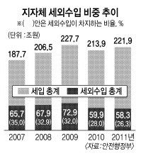 이런 상황에서 지자체의 세외수입도 최근 들어 하락세를 면치 못하고 있다. 보고서에 따르면 지자체 재정에서 세외수입이 차지하는 비중은 1987년 최고 55%까지 증가했으나 2011년에는 그 비중이 26%대로 떨어졌다. 이 중 매년 재산임대수입 등으로 꼬박꼬박 들어오는 경상적 세외수입 비중은 2011년 약 7.3%에 그쳤다.