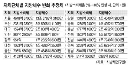 지방소비세율 5%P 올리면 지자체 세수 2조9600억 증가