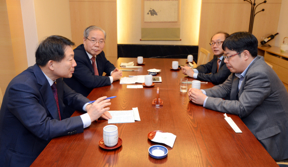 도준석 기자 pado@seoul.co.kr" title="지난 6월 비전선포식 이후 정부 3.0 정책 추진이 본격화된 가운데 이를 중간점검하기 위한 좌담회가 1일 서울 중구 코리아나호텔에서 열렸다. 사진 왼쪽부터 시계방향으로 박찬우 안전행정부 1차관, 안문석 고려대 정보보호대학원 석좌교수, 김한수 LG CNS 상무, 전진한 투명사회를위한정보공개센터 소장.