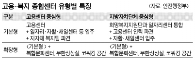 고용·복지 종합센터에서 한 단계 확장된 종합서비스센터에는 지역 여건과 주민 수요에 따라 코워킹(coworking·함께 일한다는 뜻의 조어)·복합문화 공간이 들어설 수 있다.