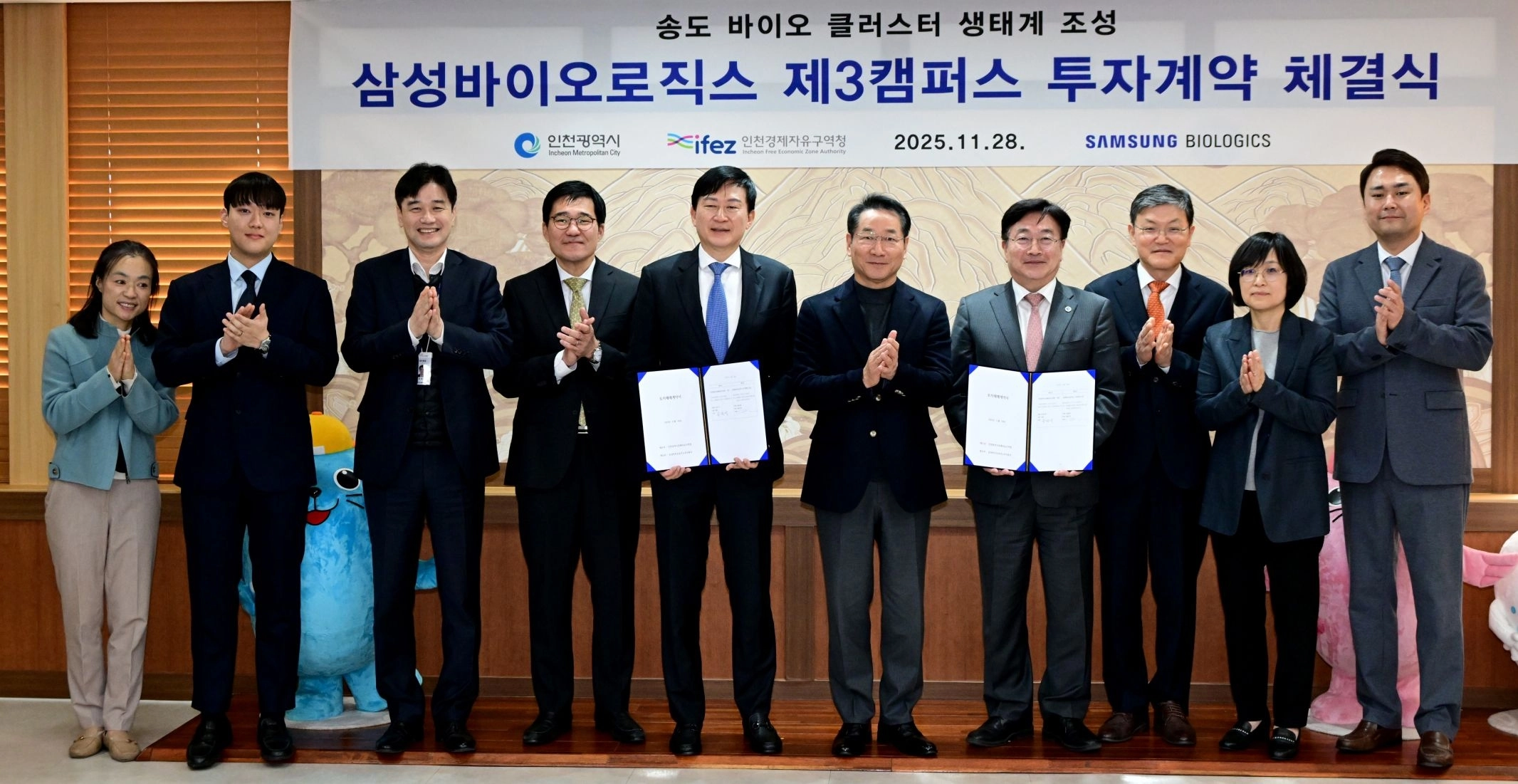 삼성바이오로직스가 인천 송도국제도시 11공구 토지를 새로 확보하고 제3캠퍼스 조성에 들어간다. 인천경제자유구역청은 28일 인천시청에서 삼성바이오로직스와 산업시설용지 18만 7427㎡에 대한 매매계약을 체결했다고 밝혔다. 매매대금은 2487억원이다.이번 부지는 송도 첨단산업클러스터 내 위치한 산업용지로, 지난 6월 공급 공모에 단독 참여한 삼성바이오로직스가 우선협상대상자로 선정된 뒤 세부 협상을 마무리했다.