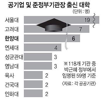 朴정부 임명 기관장 10% 꿰차… 연세·성균관대 제치고 3위에