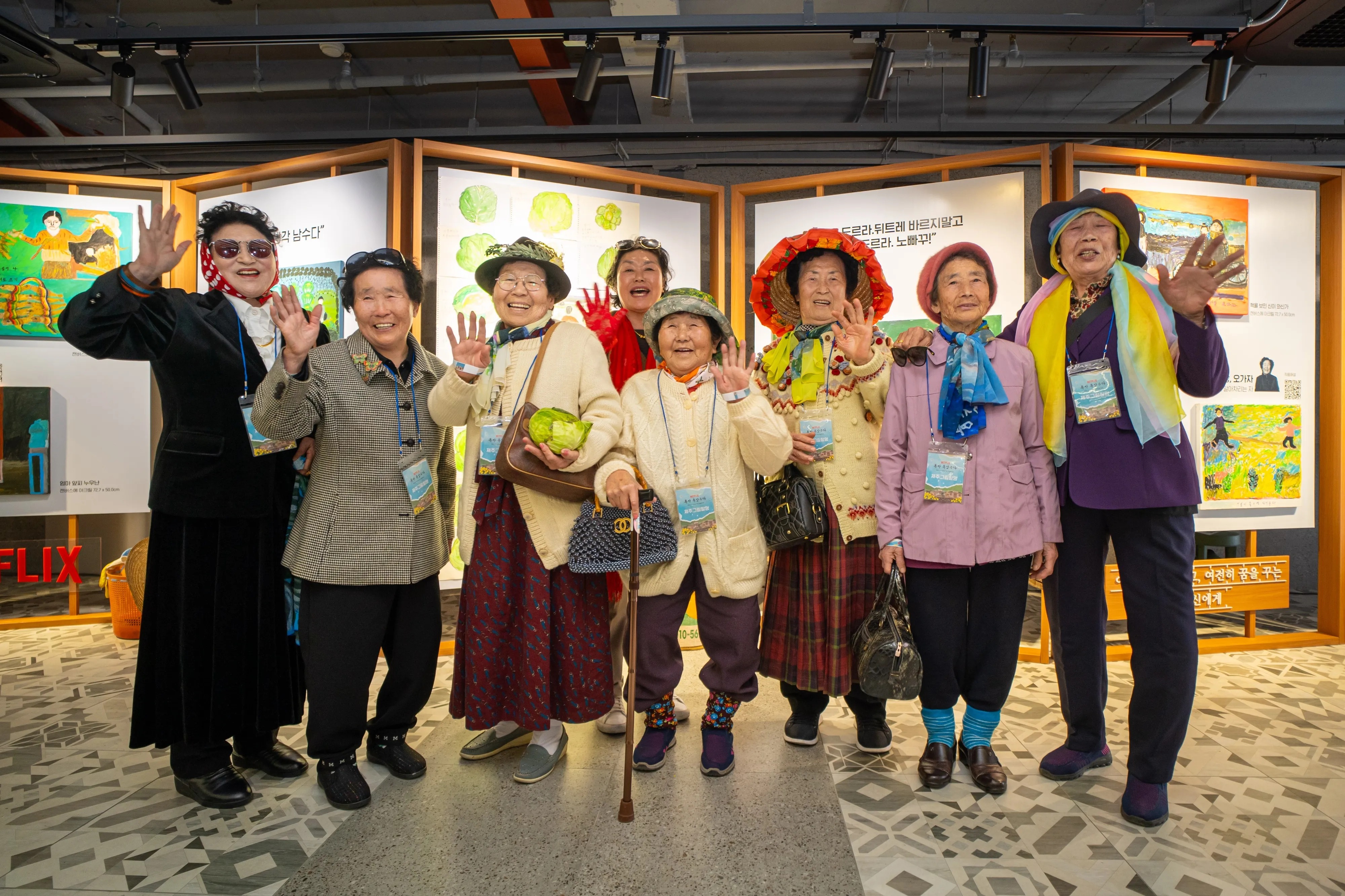 그림선생 최 작가는“서울 전시때 넷플릭스에서 할머니들에게 항공권과 숙박료까지 제공해줘 모처럼 서울나들이하는데 손에는 트렁크, 머리엔 손수 만든 패랭이, 목에는 자신의 그림이 프린트된 야광빛 스카프를 둘러 공항패션을 완성해 공항을 들썩이게 했다”며 “아이유와 박보검도 전시회를 찾아 할머니들과 도란도란 이야기꽃을 피우고 함께 사진찍으며 응원해줘 신났다”고 전했다.