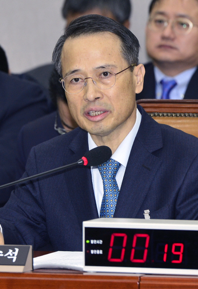 김규현 청와대 외교안보수석이 2일 국회에서 열린 운영위원회에서 의원들의 질문에 답변을 하고 있다.
