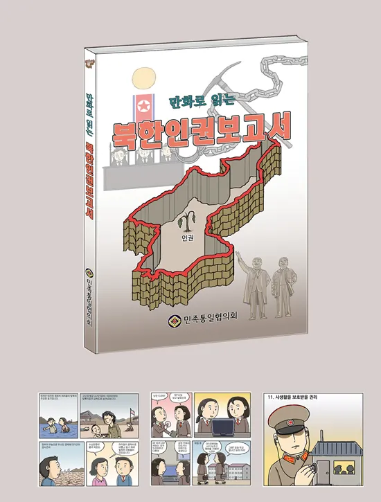 전국 최대 민간통일운동 단체인 민족통일협의회는 북한의 전반적인 인권실태와 실상을 우리 국민들에게 널리 알리고 실질적인 해법을 함께 찾고자 통일교육용 웹툰 ‘만화로 읽는 북한인권보고서’(올칼라 160쪽 5000부)를 펴냈다. 민통에서 선보인 ‘만화로 읽는 북한인권보고서’는 북한인권에 대해 정부에서 발간한 공개보고서인 ‘북한인권보고서’의 내용을 국민들이 쉽게 접근할 수 있도록 웹툰 형태로 제작되었다.