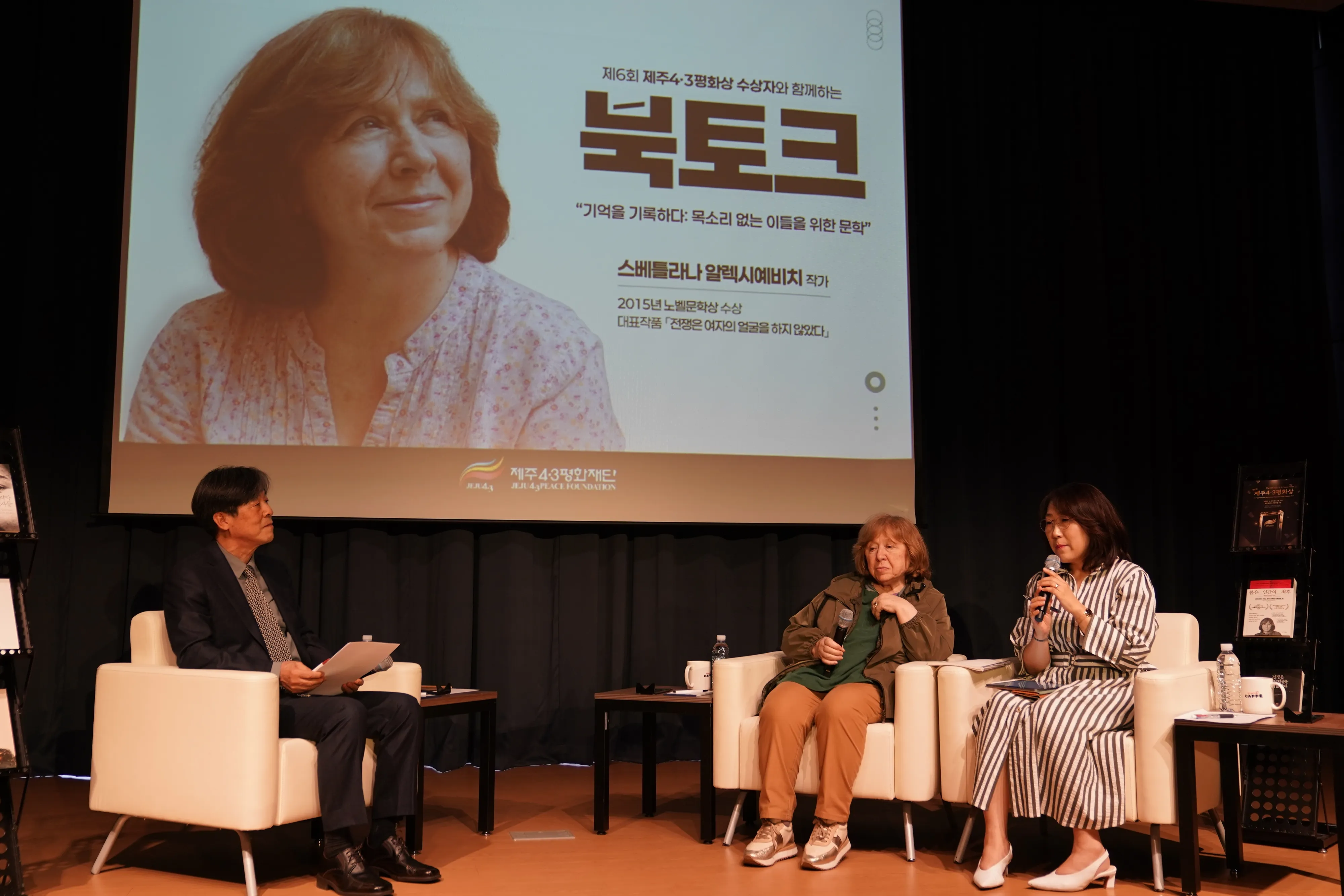 이와 함께 알렉시예비치 작가의 제6회 제주4·3평화상 수상 공적을 소개하고, 기억을 기록하는 일이 얼마나 중요한지를 함께 이야기하며 제주4·3의 역사와 그 의미를 성찰하는 시간을 가졌다.