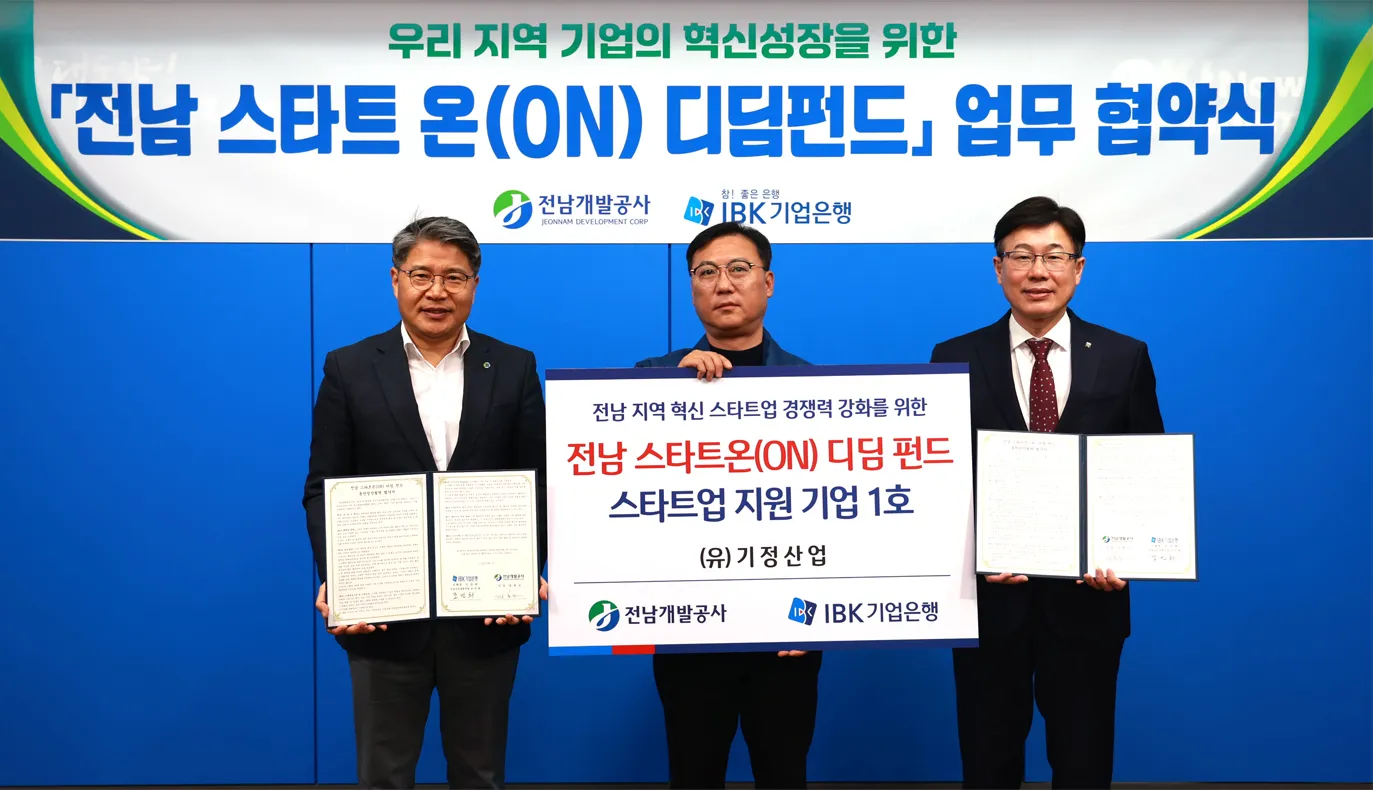 한편, ‘전남 스타트ON 디딤펀드’ 1호 지원대상으로 선정된 (유)기정산업은 2018년에 창업한 선박 철구조물 제조기업으로, 조선·해양산업 분야에서 기술고도화를 추진 중인 지역 유망기업이다.