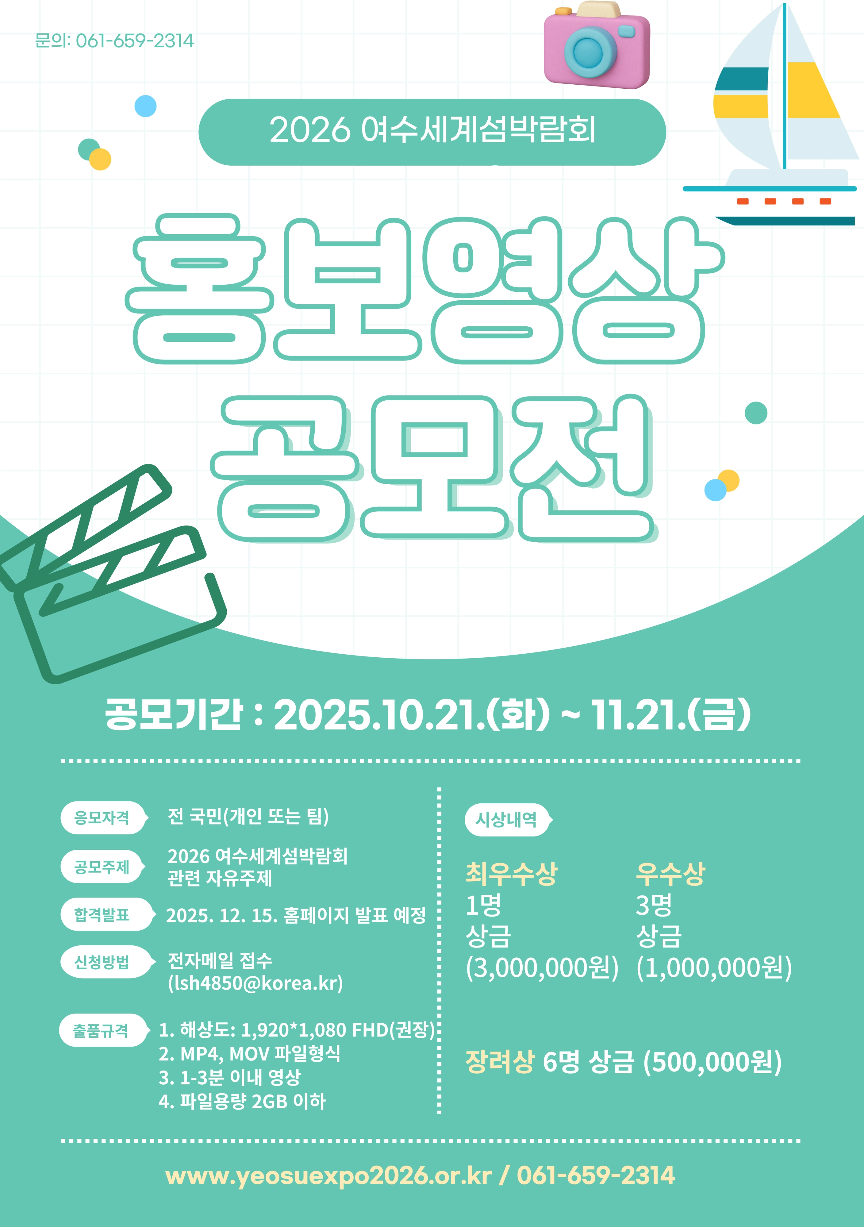 2026여수세계섬박람회조직위원회가 11월 21일까지 ‘2026여수세계섬박람회 홍보영상 공모전’을 개최한다.
