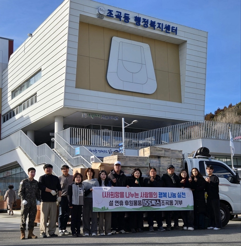 사단법인 희망을 나누는 사람들이 설 명절을 맞아 조곡동 취약계층을 위해 세제, 샴푸, 의류 등 생활용품 155박스 2130점을 기부하며 따뜻한 나눔을 실천해 눈길을 끌었다.
