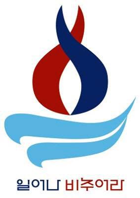역동적으로 타오르며 서로 어우러지는 불꽃의 파란색과 빨간색은 분단국가이자 아시아의 중심 역할을 수행하게 될 남북한을 상징한다. 또 남북의 평화와 일치에 대한 기원도 담겼다.
