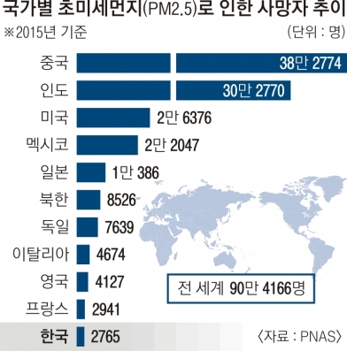 2015년 한국 초미세먼지 사망 2765명