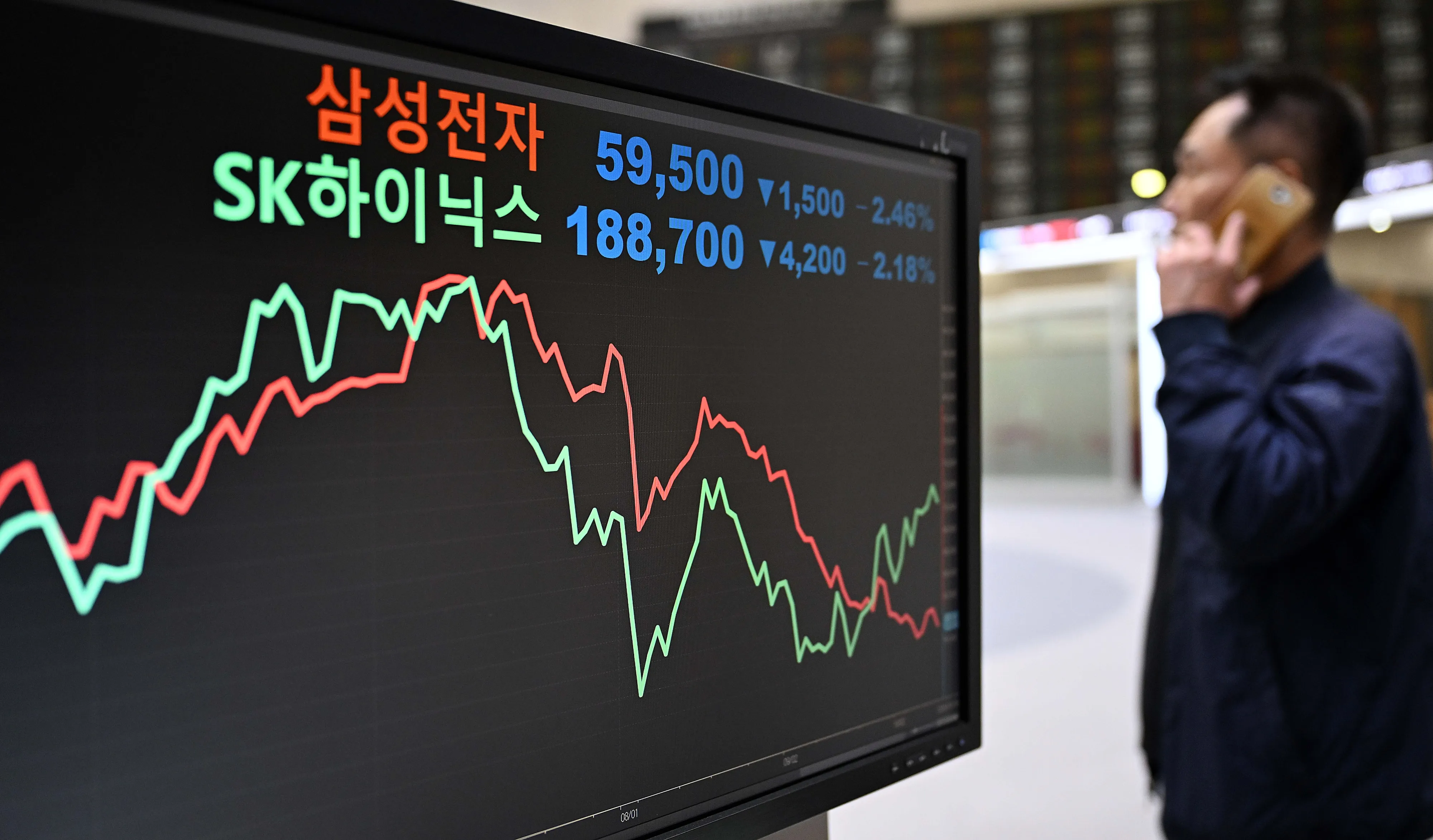 엔비디아의 최대 수혜주로 평가받는 SK하이닉스도 주춤했다. SK하이닉스는 전 거래일 대비 2.18% 떨어진 18만 8700원으로 장을 마감했다.