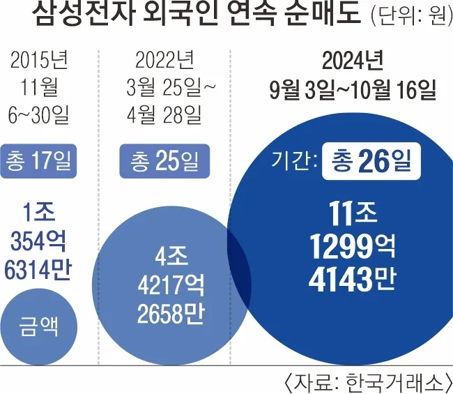외국인 삼성전자 26거래일째 매도역대 최장… 11조원 넘게 팔아치워