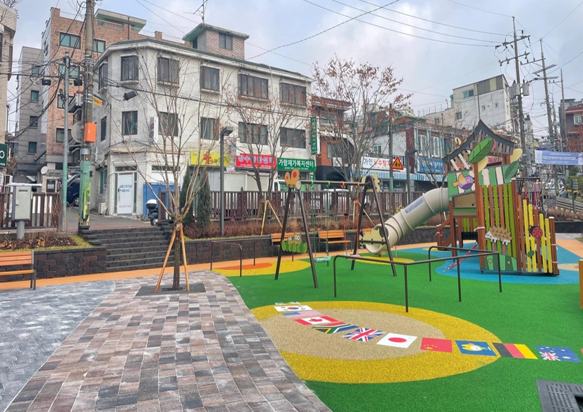 푸른골어린이공원의 경우 조합놀이대와 함께 그네, 시소, 트램펄린 등을 설치했다. 공원에 순환형 산책로도 조성했다. 외국인과 다문화 가정이 많은 지역 특성을 살려 세계 국기 바닥 그림 등을 도입했다.