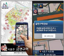 이 알리미 앱은 보행자가 금연구역 20m 전방에 접근하면 “주변에 금연구역이 있습니다”라는 음성 메시지와 문자 메시지를 보행자에게 전송해 준다.