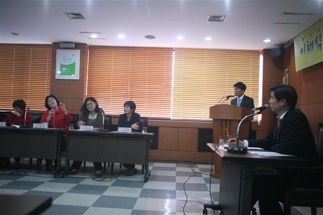 이날은 ‘청누리 스터디’ 회원 23명이 참석했다. 청누리는 한국방송통신대 청소년교육과 재학생, 졸업생 중 강동·송파 지역 모임으로, 자체 학습 외에 학교 폭력 상담, 진로 컨설팅 등 지역 청소년 교육 활동에 폭넓게 참여하고 있다. 토론에서는 청소년 지도 공간에 관한 의견이 많이 나왔다. 최귀분 청누리 대표는 “아이들을 지도하고 함께 공부하려고 해도 비용을 들여 임대하는 것 외에 장소를 안정적으로 마련하기가 어렵다”고 전했다.
