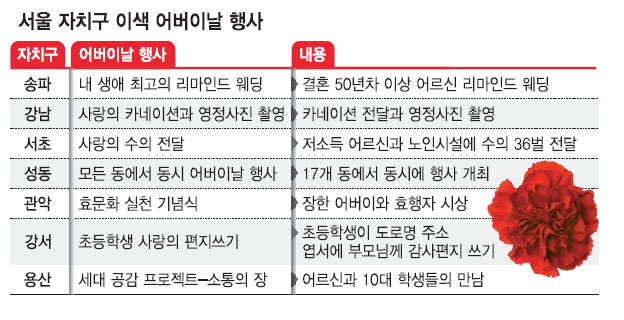 8일 어버이날… 자치구 행사 가득