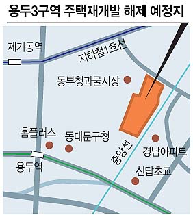 사업 추진주체가 없어 답보 상태에 놓였던 용두3구역은 향후 심의를 끝내면 주민들과 별다른 마찰을 겪지 않고 해제될 것으로 보인다고 구는 전했다.