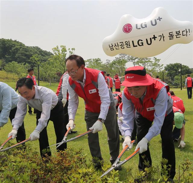 남산공원이 100번째로 입양됐다.서울시는 4일 중구 회현동 일대 남산공원 백범광장에서 LG유플러스와 남산공원 돌보미 협약을 맺었다. 협약 후 문승국 행정2부시장과 신용삼 LG유플러스 사장 등 100여명은 잡초 제거와 철쭉 가지치기 등 돌보미 활동을 벌였다.