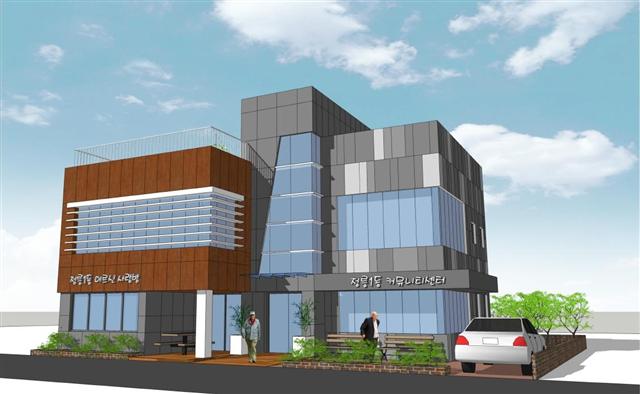노인들만의 공간이 온 세대를 아우르는 통합 공간으로 거듭난다.서울 성북구는 4일 정릉1동 커뮤니티센터(조감도) 기공식을 열었다. 구립 경로당이 새롭게 탄생하기 위해 첫 삽을 뜬 것이다. 오는 10월 개관이 목표다. 기존 경로당은 다세대주택 2층에 있어 노약자들에게 불편했다. 공간 또한 비좁아 그다지 이용되지 않았다. 이 때문에 주민들은 지난해 5월 추진위원회를 만들어 구에 경로당 신축을 요청했다. 구는 정릉1동 지역에 문화·복지 편의 시설이 부족한 점을 감안해 경로당을 신구 세대가 소통할 수 있는 지역공동체 공간으로 확장할 계획을 세웠다.