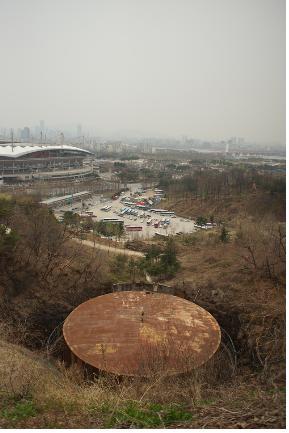 일반에 공개될 서울 마포구 상암동 월드컵경기장 옆에 있는 마포 석유비축기지. 1979년 조성돼 2000년까지 쓰인 이 기지는 비축기지답게 외부에서 보기엔 은폐된 것처럼 지어졌다. 석유 비축 탱크는 두꺼운 곳은 지름만 38m, 높이 14m에 이르는 거대한 철제 원통이다. 이 시설의 활용 방안을 두고 서울시는 다음 달 1일까지 홈페이(www.seoul.go.kr)
