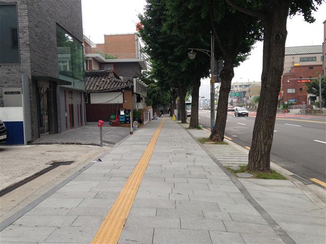 하지만 종로구의 친환경 보도블록은 20㎝ 두께의 흙으로 기초를 쌓고, 그 위에 모래를 5㎝ 두께로 깐다. 그리고 그 위에 두께 5㎝의 화강석 재질의 자연 석재를 쌓아올린다. 종로구 관계자는 “자연친화적 보도블록을 깐 다음에는 비가 많이 와도 빗물이 땅속으로 자연스럽게 스며드는 효과를 보고 있다”고 전했다. 이어 “자연적인 흙과 석재를 이용해 보도블록을 만들어 한번 깐 뒤 다음 보수까지는 15년이 걸린다”면서 “기존의 콘크리트 보도블록은 매년 정비작업을 해야 할 만큼 보수 기간이 짧았던 반면 자연친화적 보도블록은 초기 설치 비용은 더 들지만, 보수비용까지 고려한다면 오히려 훨씬 경제적이고 주민 세금을 아낄 수 있을 것”이라고 설명했다.