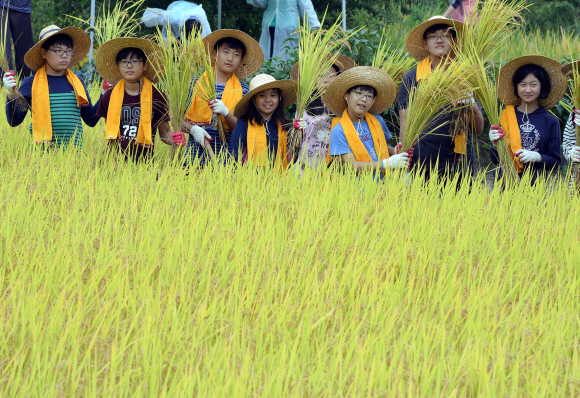 서울區政 >구정뉴스 우리가 직접 벼 수확했어요 입력 2013 10 09 00:00 수정 2013 10 09 00:00 기사 소리로 듣기 다시듣기 8일 서울 강동구 일자산 영농체험장에서 열린 가을걷이 행사에 참가한 초등학생들이 직접 수확한 벼를 들어 보이고 있다.이언탁 기자 utl@seoul.co.kr 8일 서울 강동구 일자산 영농체험장에서 열린 가을걷이 행사에 참가한 초등학생들이 직접 수확한 벼를 들어 보이고 있다.이언탁 기자 utl@seoul.co.kr ⓒ 트윅, 무단 전재 및 재배포 금지
