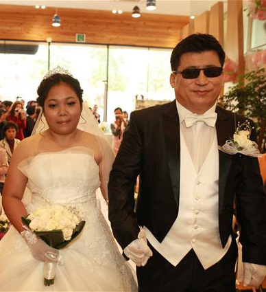 결혼식은 지난 5일 막을 올린 ‘관악 평생학습축제-책잔치’ 기간에 열려 더욱 잔칫집 분위기를 풍겼다. 신림중앙교회 권재명 목사가 주례를 섰다. 결혼식을 적극 추진한 백성원 즐거운가족봉사단장이 신부 어머니를 대신했다. 아들 봉균(4)군은 곱게 한복을 입고 할아버지, 할머니 무릎에 앉아 엄마·아빠를 지켜봤다. 예물 교환 및 서약을 하고, 웨딩 케이크를 잘랐다. “너무 좋다, 행복하다”고 되뇌던 신부는 끝내 눈물을 떨궜다. 꼬마합창단이 앙증맞게 축가를 합창하자 주민들과 구 직원 등 하객 100여명이 함께 박수를 쳤고, 도서관은 온통 행복으로 물들었다. 김씨는 “집사람에게 너무 미안했다. 도와주신 모든 분들에게 감사드린다. 특히 도서관에서 결혼식을 올려 아이에게 더 뜻깊다”고 말했다.