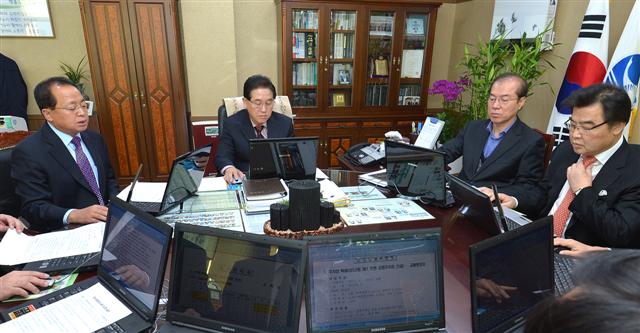 12일 오전 8시 30분, 동작구청장실에선 문충실 구청장을 비롯해 석성근 부구청장 및 실·국·과장 14명이 둘러앉아 한 시간가량 주민 숙원사업 및 구청장 공약사업 등 43개의 주요 현안에 대한 진행상황을 꼼꼼하게 따졌다.