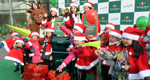 26일 서울 청계천에서 열린 초록우산 어린이재단 산타원정대 캠페인에 참석한 어린이들이 캠페인 성공을 기원하며 종이비행기를 날리고 있다. 이 캠페인은 저소득 가정 어린이들의 크리스마스 소원을 이뤄 주기 위해 후원자를 모집하는 행사다.