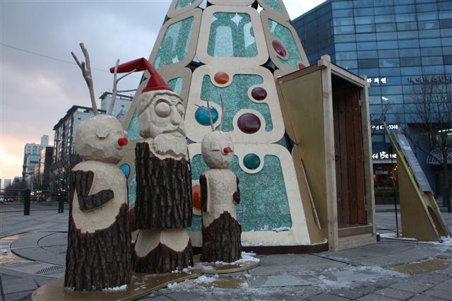 강동구청앞 분수광장 트리 속 사랑의 약속 내년 X마스에 발송해 드려요…서대문구 연세로 다양한 모양 24개 소망도 적고 벼룩시장도 열려