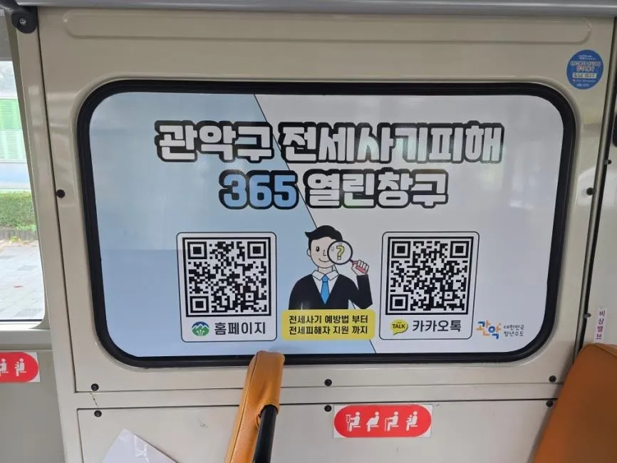 구는 전세사기 피해 예방과 지원을 위해 ‘1인가구 전월세 안심계약 도움서비스’와 ‘전세사기피해 365 열린창구’를 운영하고 있다. 관내 주요 7개 노선의 90대 지선버스에 광고를 게시했다. 주민들이 자주 이용하는 버스 내·외부에 광고물을 부착해 반복적인 노출을 통해 서비스 인지도를 높이고 전세 사기 피해를 사전에 예방하기 위함이다.
