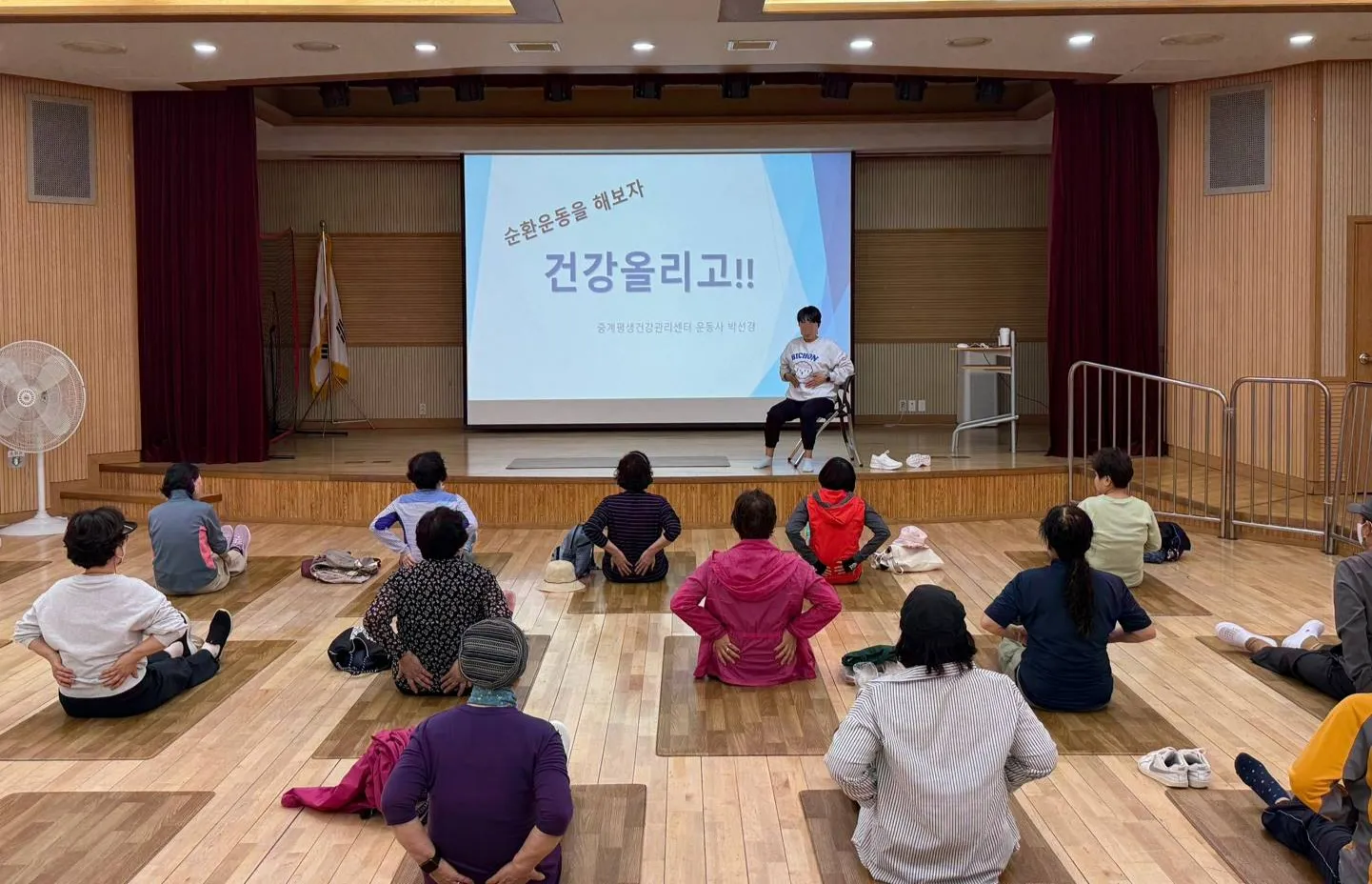 지난 4월 서울 노원구 중계평생건강관리센터 ‘건강올리고’ 프로그램에서 참가자들이 순환운동을 하고 있다.