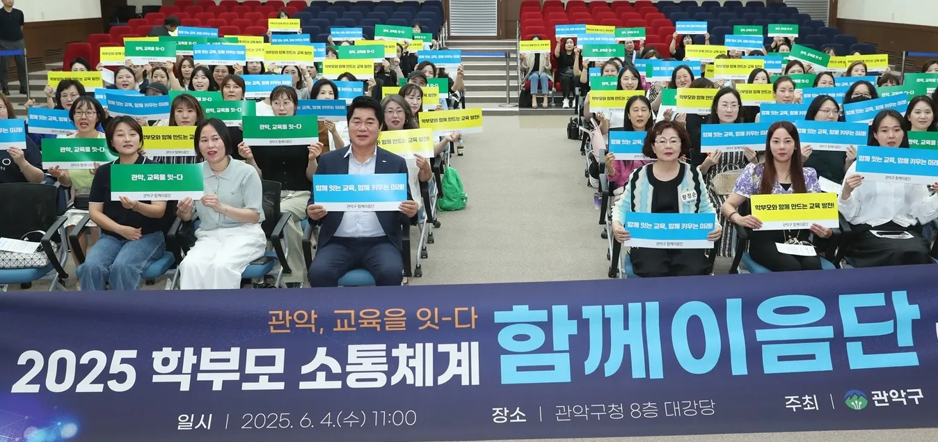 서울 관악구가 지난 4일 관악구청 대강당에서 학부모와 지역사회의 대표 소통 채널이 되어줄 ‘함께이음단’ 발대식을 열었다고 5일 밝혔다.관악구 관계자는 “구와 학부모 간 긴밀한 소통 체계 구축과 학부모 간 교류 확대를 통한 ‘교육공동체’ 기반을 마련하고자 ‘함께이음단’을 발족했다”고 설명했다. 지난 3월 관내 52개 초중고 학교장의 추천을 통해 구성된 150명의 학부모 대표들은 발대식에서 첫 만남의 자리를 가졌다.