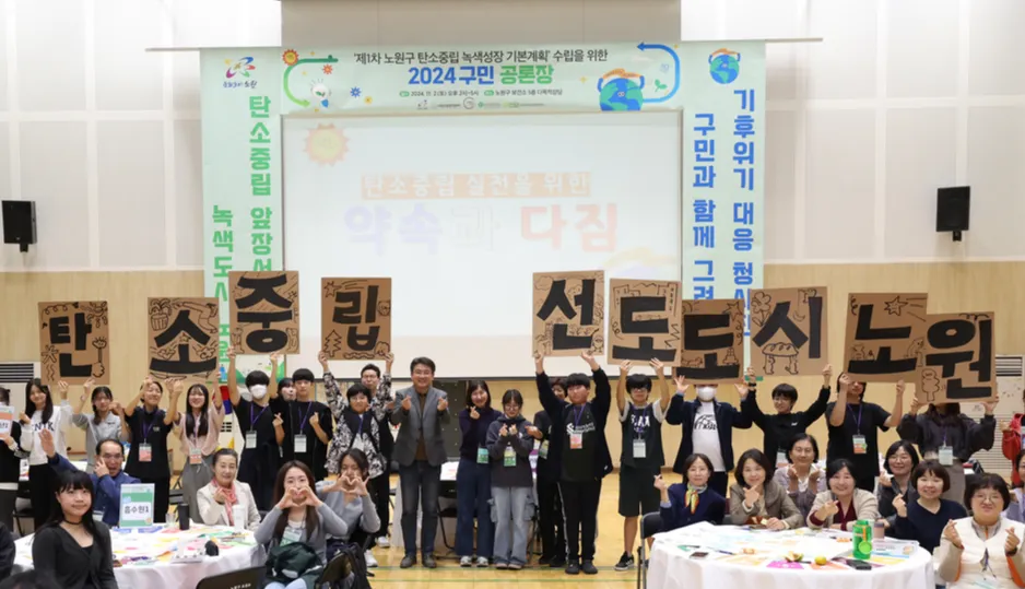 서울 노원구가 지난해 11월 개최한 탄소중립 녹색성장 기본 계획 수립을 위한 구민 공론장에서 참가자들이 기념사진을 찍고 있다.