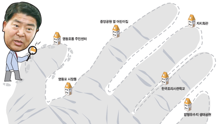 민원이 끊이지 않는 재정비 촉진 지역을 살피러 영등포시장통을 걸어가면서도 쉴 새 없이 곳곳을 살폈다. 쓰레기가 버려졌거나 상점에서 인도를 점거한 곳이 눈에 띄면 득달같이 지시를 내렸다. 중앙공원 인근 영삼어린이집을 찾아 어린이들에게 ‘손 하트’를 날리며 환하게 웃던 조 구청장은 곧 자치회관을 찾아 사물놀이를 즐기던 동네 주민들과 담소를 나누기도 했다. 주민센터 구내 식당에서 점심을 함께하며 직원들의 고충에 귀를 기울이고는 인근 한국조리사관학교에서 베이비부머 세대에게 제공하는 요리 강좌의 수료식도 찾아갔다. “구민과의 약속은 끝까지 지키는 구청장으로 남고 싶다”는 조 구청장은 양평유수지 생태공원에서 열린 모내기 체험 행사까지 숨가쁜 일정을 거듭하면서도 미소를 잃지 않았다. 최근 한국매니페스토실천본부 주최 민선5기 3년차 기초단체장 공약 이행 평가에서 최우수구로 선정된 게 이처럼 현장을 누빈 덕택이라는 평가를 듣는다.