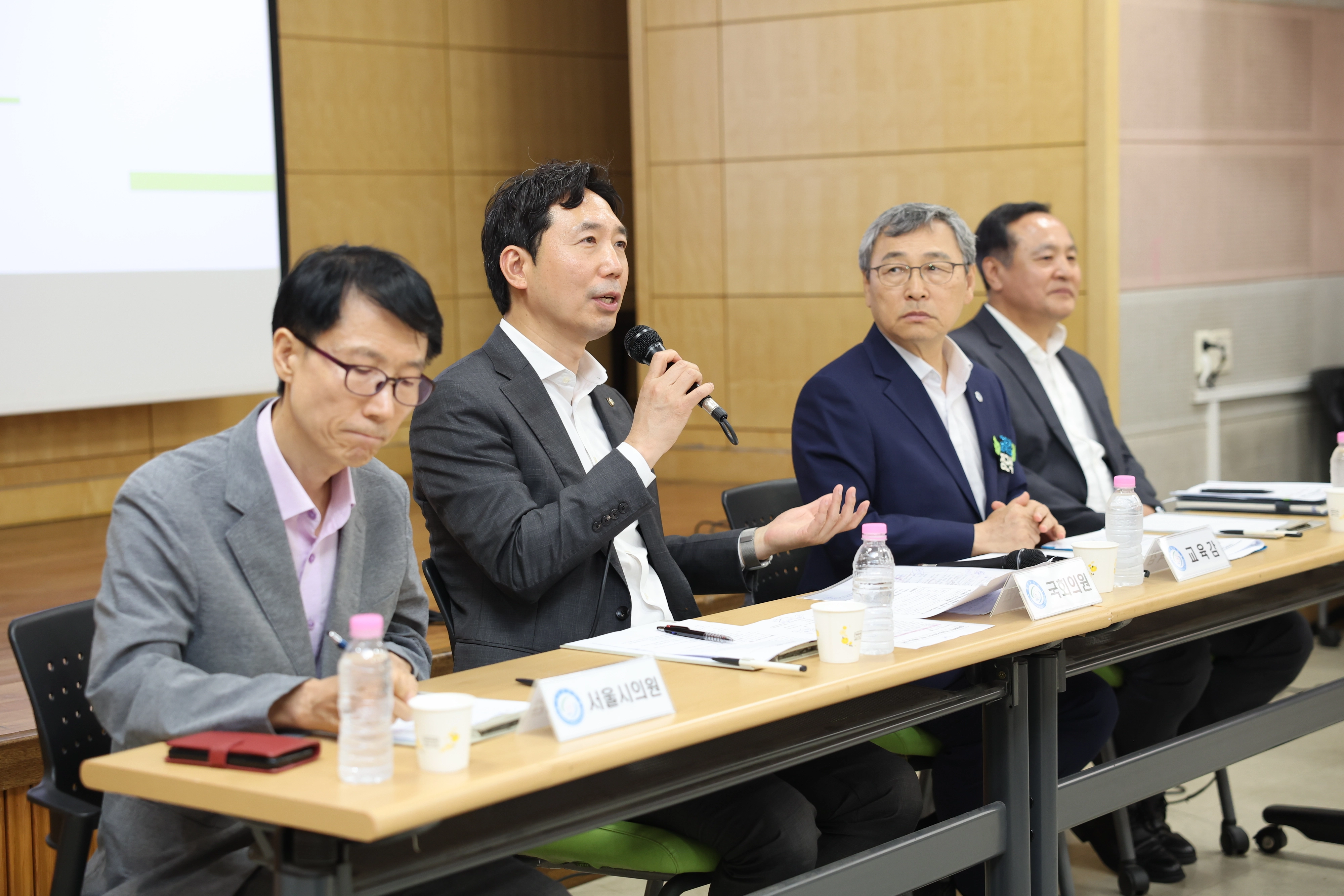 서울시의회 교육위원회 전병주 부위원장(더불어민주당, 광진1)과 이정헌 국회의원(더불어민주당, 광진갑)은 지난 19일 양진중학교에서 정근식 서울시교육감, 교직원, 학부모들과 함께 간담회를 열고 교육환경 개선 방안을 논의했다.