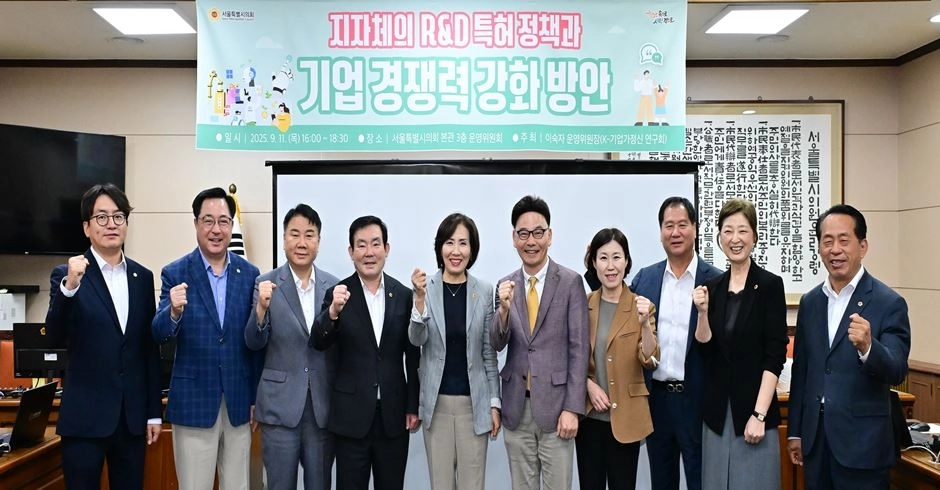 이숙자 서울시의회 운영위원장(국민의힘, 서초2)은 지난 11일 서울시의회 본관 운영위원회 회의실에서 ‘지자체 R&D 특허정책과 기업경쟁력 강화 방안’을 주제로 포럼을 개최했다. 이번 포럼은 이숙자 위원장이 대표의원으로 활동 중인 의원연구단체 ‘K-기업가정신 연구회’가 주최했다.