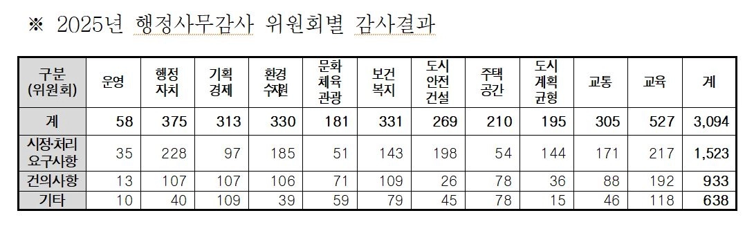 ‘송곳’ 행정사무감사로 3000건 조치… 2026년도 62조원 슈퍼 예산 현미경 심의 완료