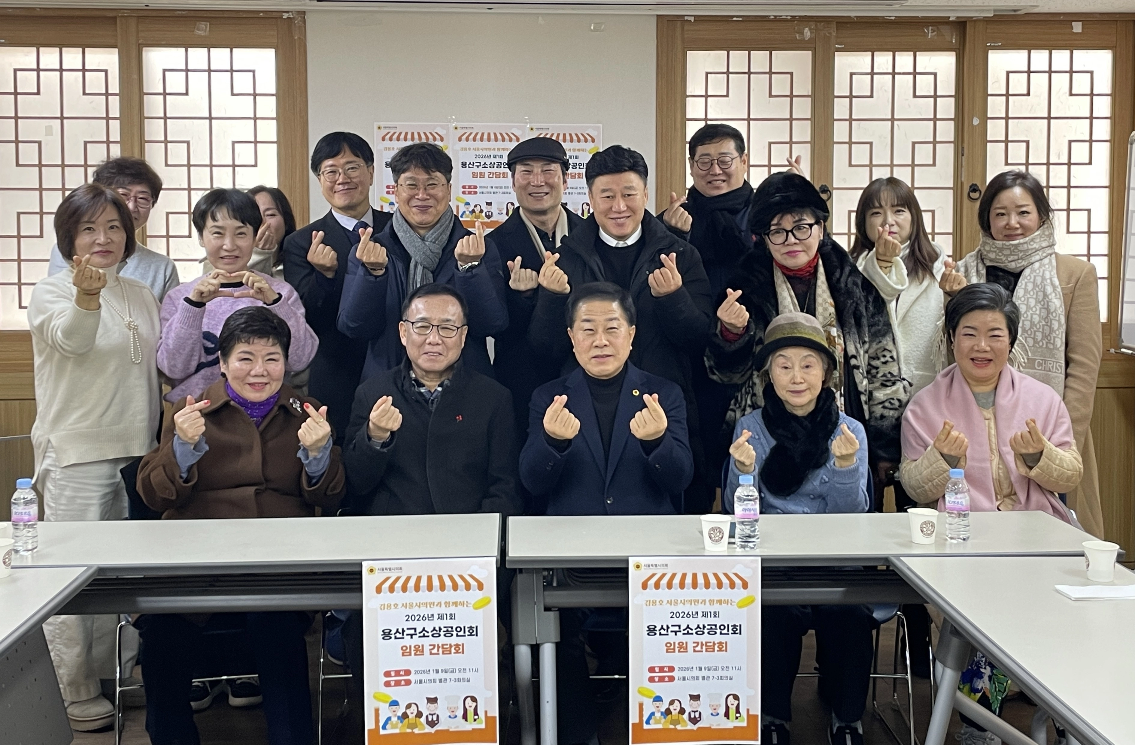지난 9일 서울시의회 별관 회의실에서 개최된 ‘2026년 제1회 용산구소상공인회 임원 간담회’에 참석한 김용호 서울시의원(앞줄 중앙)이 단체 기념촬영을 하고 있다.