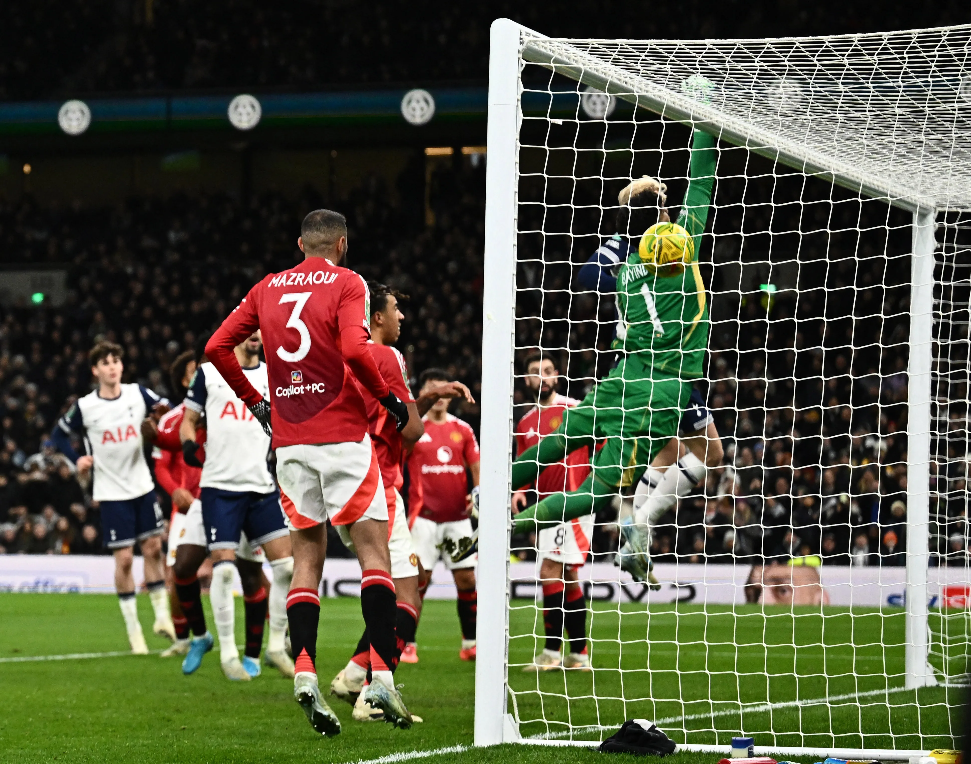 20일(한국시간) 영국 런던의 토트넘 홋스퍼 스타디움에서 열린 2024~25 카라바오컵 8강전 맨체스터 유나이티드와의 홈 경기에서 토트넘 손흥민이 찬 코너킥이 그대로 골문 안에 들어가고 있다. 런던 로이터 연합뉴스